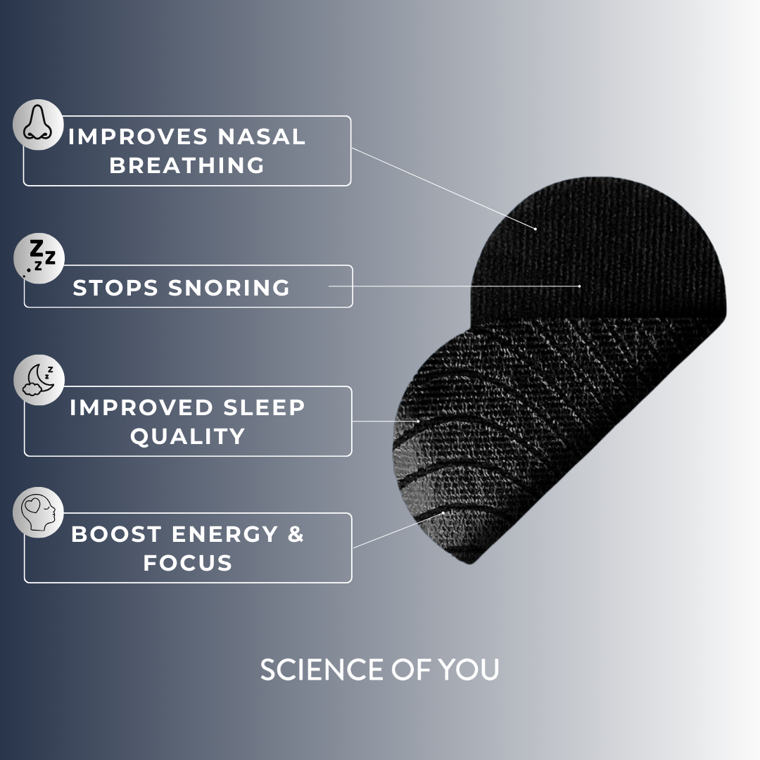 Backed by rigorous research, Science of You mouth tape is designed to promote nasal breathing which can revitalize your sleep, reduce snoring, fuel your energy, and enhance your overall health & wellness.